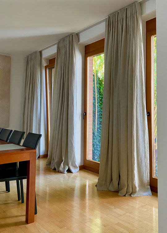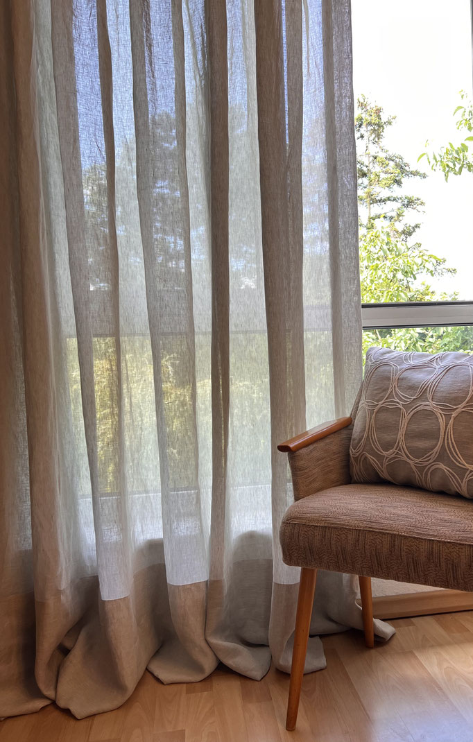 Unsere Stoffe vereinen höchste Qualität mit zeitloser Eleganz. Jeder Vorhang wird perfekt auf deine Fenster abgestimmt, mit einem wunderschönen Faltenwurf und der passenden Aufhängung, sei es für Gardinenschienen oder Stangen. Natürlich berücksichtigen wir auch deine Wunschmaße – ob bodenlang für eine elegante Atmosphäre oder mit Bodenfreiheit für eine schwebende Leichtigkeit.